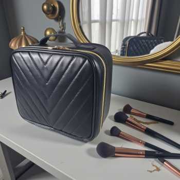 | Perlindungan Maksimal Bagian luar tas menggunakan kulit PU tahan air yang membuatnya tahan terhadap percikan air. Material ini membuat Anda dapat membawa tas dengan aman ketika gerimis. Selain bahan kulit PU, sekat-sekatnya menggunakan bahan busa yang aman dan tahan benturan untuk perlengkapan make up serta kosmetik. |