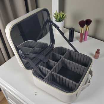 Bagian partisi atau sekat pada tas organizer make up dapat dilepas saat Anda membutuhkan ruang yang lebih besar untuk perlengkapan make up berukuran besar. Anda bisa memasang dan memposisikan sekat sesuai dengan kebutuhan. Dengan begitu, Anda bisa menyimpan berbagai jenis dan ukuran make up yang bervariatif baik berukuran kecil maupun besar.