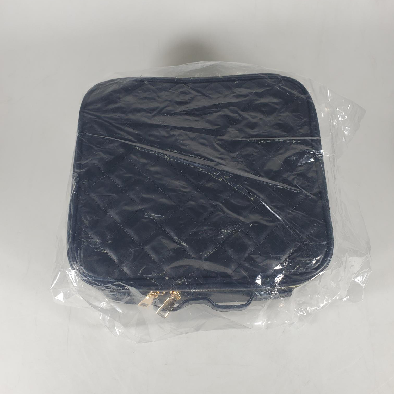 SNU Tas Organizer Make Up Kosmetik with Mirror and Light 26x23x12cm Checkered - F350 - Black