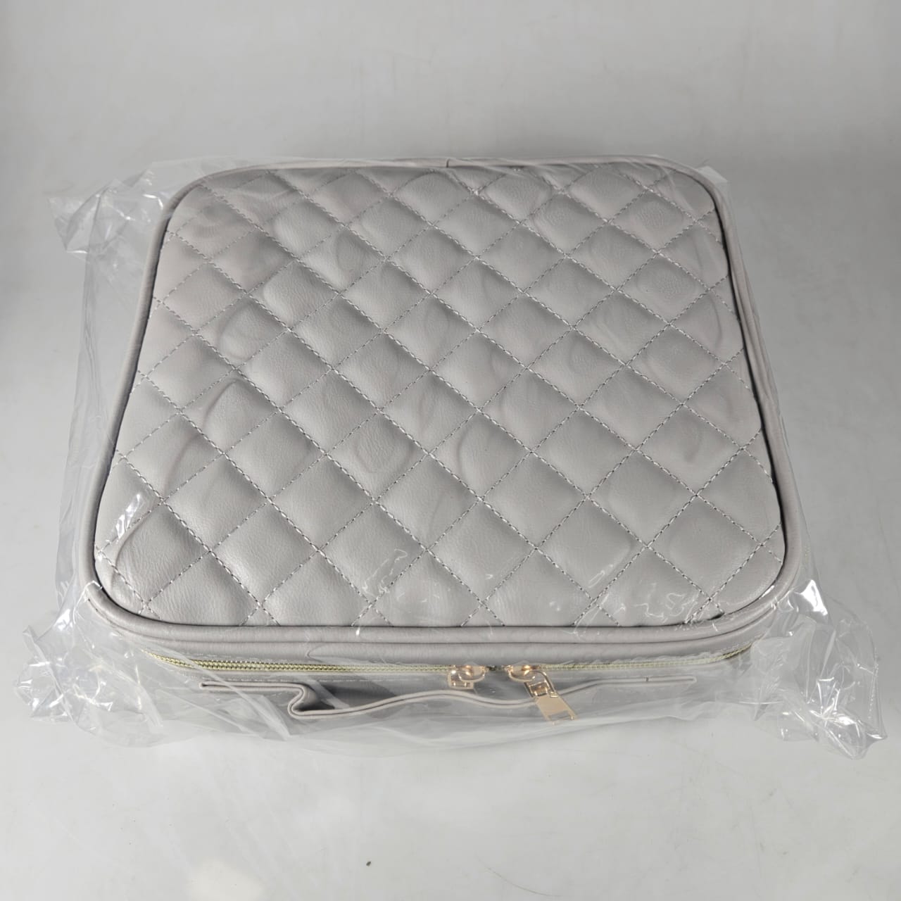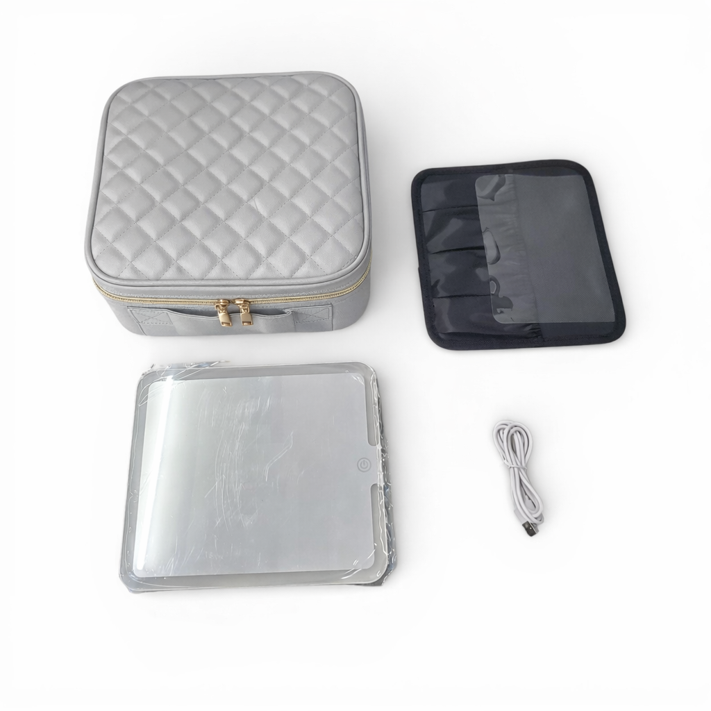 SNU Tas Organizer Make Up Kosmetik with Mirror and Light 26x23x12cm Checkered - F350 - Gray