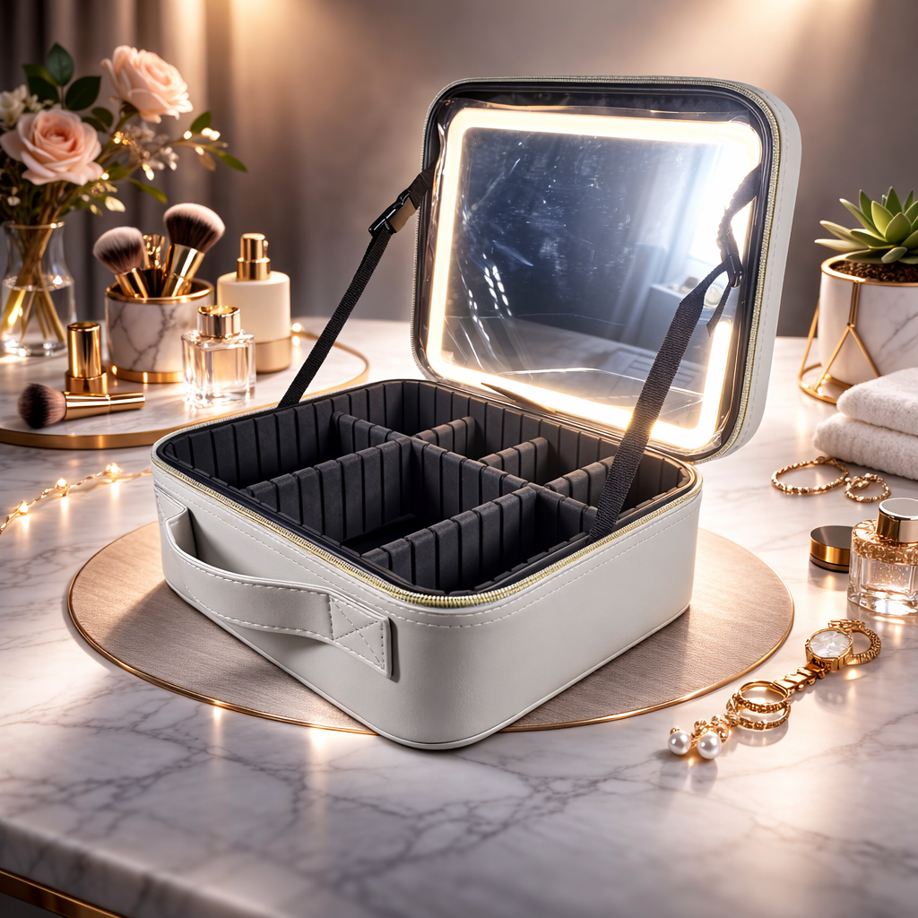 Dilengkapi dengan cermin sekaligus lampu LED, tas make up ini memberikan pencahayaan yang merata dan natural sehingga make up bisa diaplikasikan lebih akurat meski di ruangan minim cahaya. Desain all in one membuat Anda tidak perlu membawa cermin dan lampu LED terpisah, lebih ringkas untuk traveling.