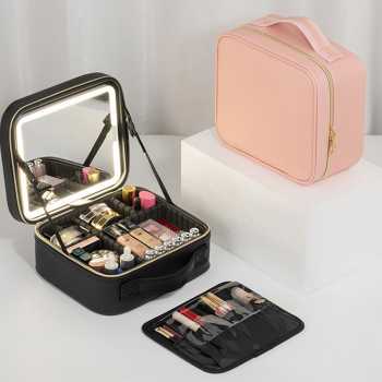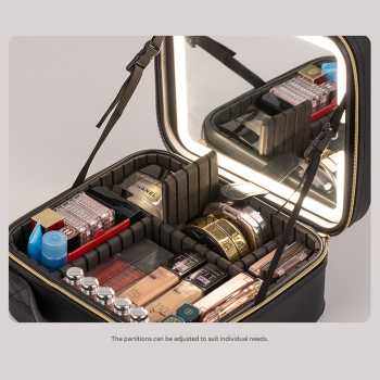 | Aplikasikan Make Up Akurat Dilengkapi dengan cermin sekaligus lampu LED, tas make up ini memberikan pencahayaan yang merata dan natural sehingga makeup bisa diaplikasikan lebih akurat meski di ruangan minim cahaya. Desain all in one membuat Anda tidak perlu membawa cermin dan lampu LED terpisah, lebih ringkas untuk traveling. |
