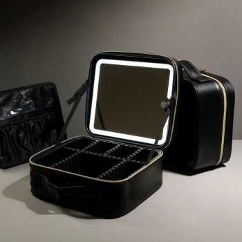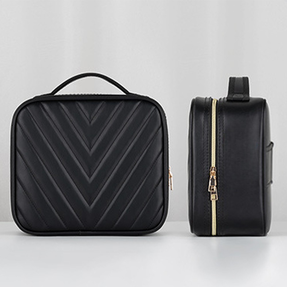 SNU Tas Organizer Make Up Kosmetik with Mirror and Light 26x23x12cm V-shaped - F350 - Black