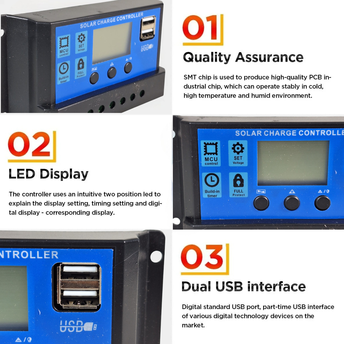 | Kontrol daya Mudah Dilengkapi dengan controller untuk mengatur pengisian baterai dari solar panel. Fungsi utama controller pengisian adalah untuk menghindari overcharging (pengisian berlebihan) dan untuk memaksimalkan umur baterai. Alat ini juga berfungsi untuk mengontrol aliran daya dari panel surya menuju baterai dengan cara yang aman. |
