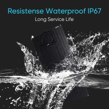 | Tangguh di Berbagai Cuaca Menggunakan lapisan EVA film berfungsi melindungi sel surya dari getaran, kelembapan, dan perubahan suhu. Dilengkapi dengan perlindungan hujan kelas IP67 menandakan panel sepenuhnya terlindungi dari debu dan air sehingga tak perlu khawatir diletakkan di luar ruangan ketika hujan. |