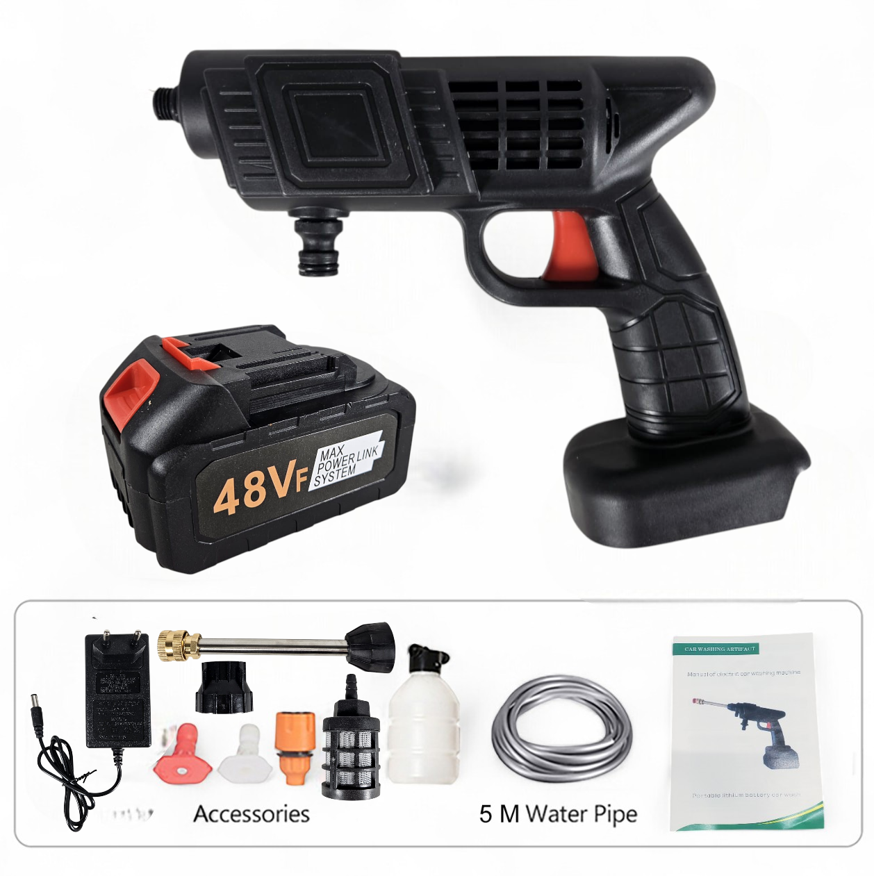 Buat kegiatan mencuci kendaraan atau membersihkan taman menjadi mudah dengan semprotan air dari SONGXIA. Semprotan berjenis spray gun ini memiliki kekuatan semprot yang tinggi untuk hilangkan noda. Makin lengkap dengan berbagai jenis nozzle, botol busa, adaptor, hingga selang sepanjang 5 M. Spray gun juga dibekali baterai isi ulang 48 VF sehingga bisa digunakan tanpa kabel listrik.