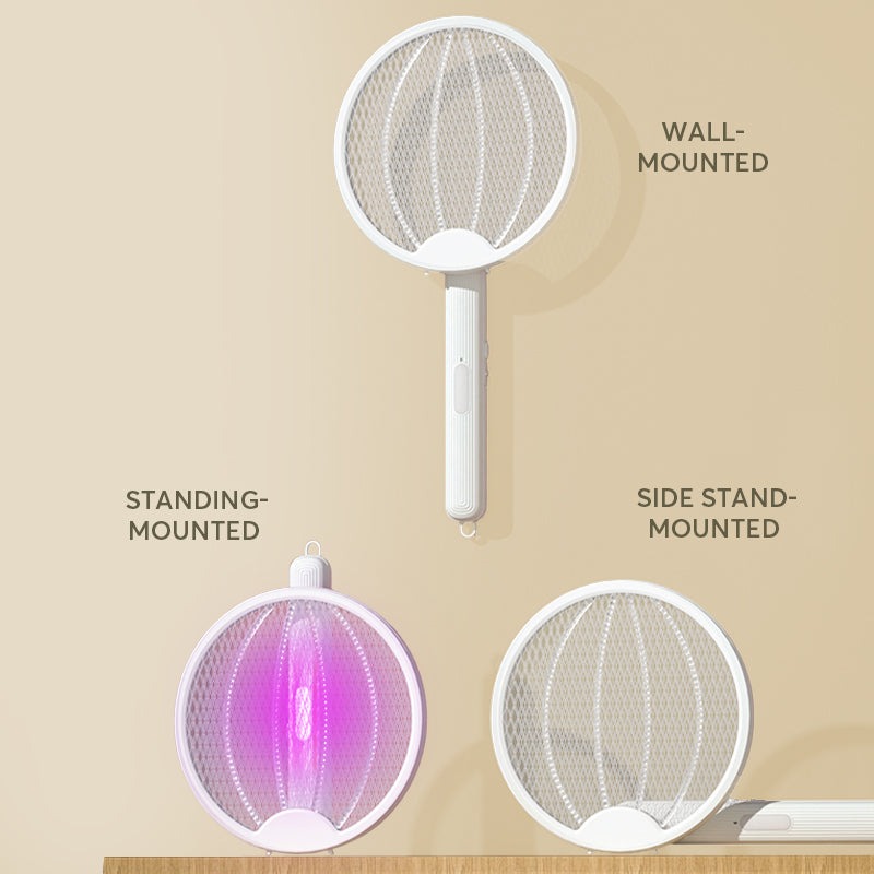 | Desain Lipat Multifungsi Mengusung desain lipat yang inovatif, raket nyamuk ini dapat digunakan dalam berbagai posisi, sebagai raket genggam, berdiri di atas meja, digantung di dinding, atau disandarkan secara samping. Satu alat dengan banyak fungsi, praktis digunakan di berbagai ruangan dan mudah disimpan atau dibawa bepergian. |