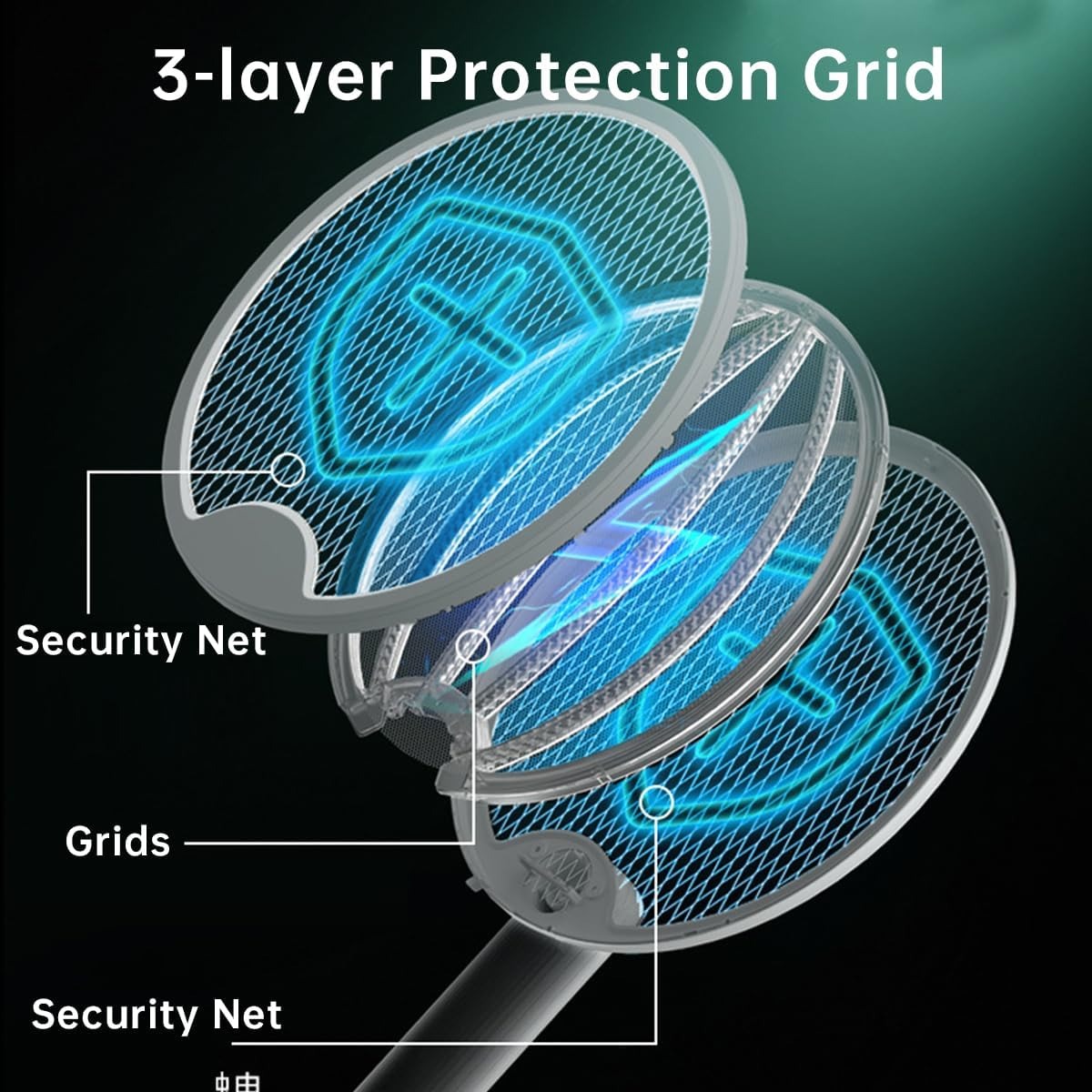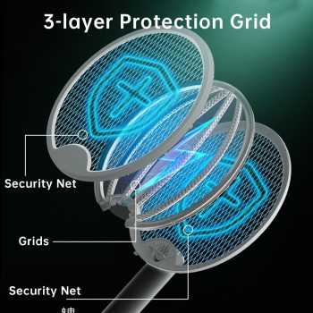 | Sistem Keamanan 3 Lapis Raket nyamuk ini dibekali 3 lapis jaring pelindung, terdiri dari jaring pengaman luar, jaring konduktor listrik di tengah, dan jaring isolasi dalam. Desain ini mencegah sentuhan langsung ke bagian bertegangan listrik, sehingga lebih aman digunakan di rumah dengan anak-anak maupun hewan peliharaan. |