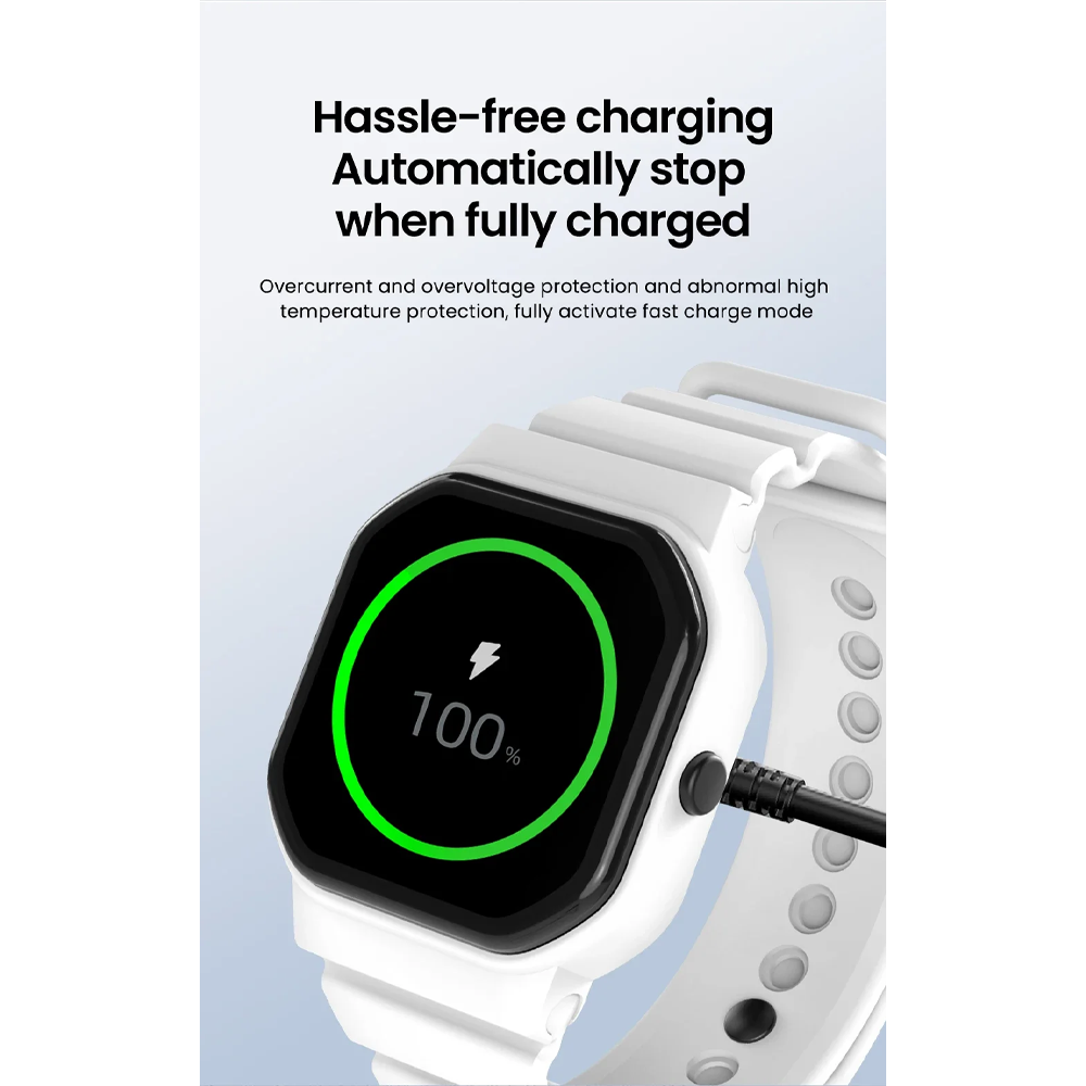 | Perlindungan Ganda Maksimal Dilengkapi proteksi overvoltage sehingga aliran daya selalu stabil dan aman untuk baterai smartwatch. Casing terbuat dari material ABS dan PC flame retardant yang tahan panas. Kabelnya menggunakan bahan TPE tahan 6000 tekukan yang lebih lembut dan fleksibel dibanding PVC biasa yang tidak mudah kaku, retak, atau mengelupas meski digunakan setiap hari. |