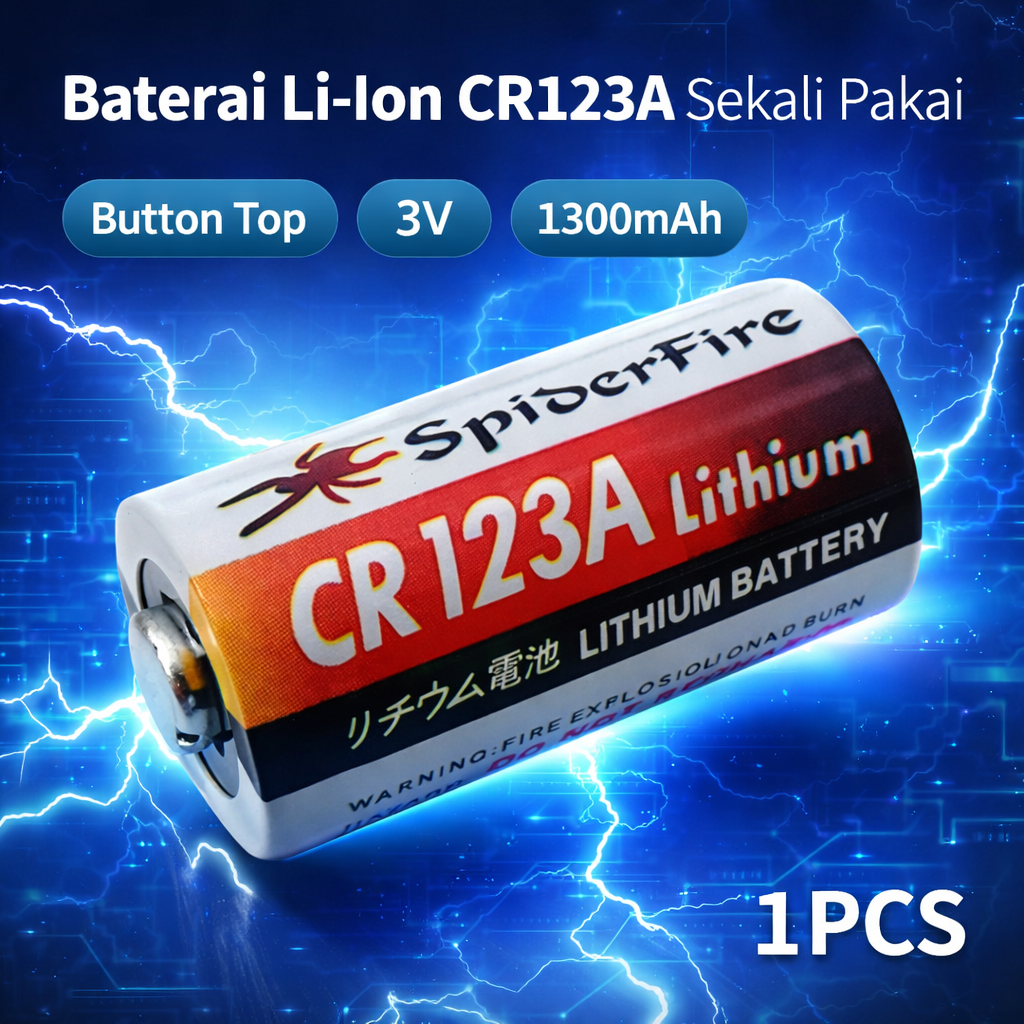 Butuh baterai yang tahan lama, stabil, dan aman untuk perangkat elektronik Anda? SpiderFire Baterai CR123A 3V 1300 mAh adalah solusi ideal untuk berbagai kebutuhan seperti senter, kamera, hingga perangkat keamanan. Dengan teknologi lithium berkualitas tinggi, baterai ini mampu memberikan performa maksimal dan daya tahan lebih lama dibanding baterai biasa. Baterai sekali pakai ini dirancang untuk memberikan suplai daya yang konsisten, sehingga perangkat Anda tetap bekerja optimal tanpa gangguan. Cocok untuk penggunaan harian maupun kebutuhan profesional.