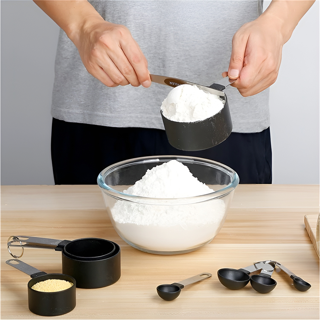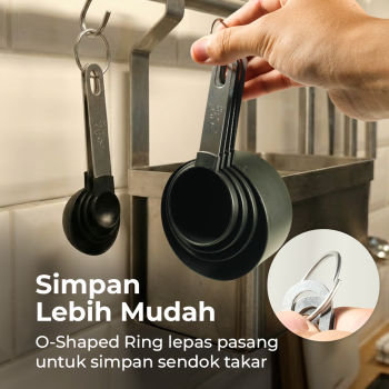 | Set Lengkap 8 Ukuran Terdiri dari 4 sendok takar dan 4 cup takar dengan ukuran paling umum digunakan dalam resep internasional maupun lokal. Dengan ukuran yang lengkap, Anda dapat mengukur bahan cair seperti susu dan minyak maupun bahan kering seperti tepung dan gula secara presisi. Takaran yang konsisten membantu menjaga kualitas rasa dan tekstur masakan. |