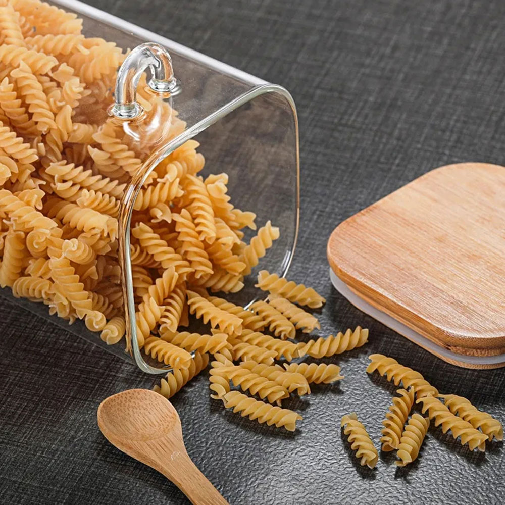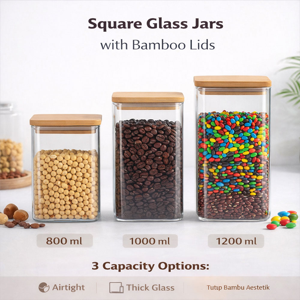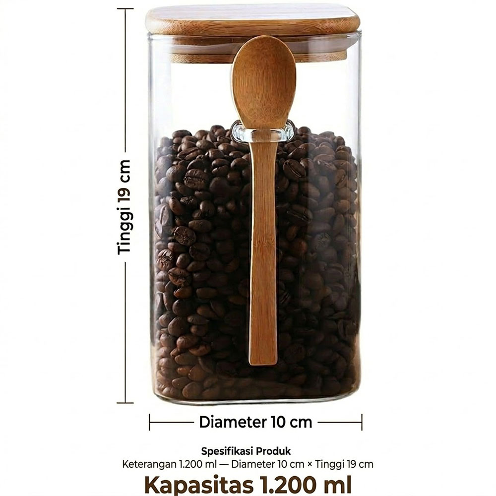 Toples kaca borosilikat kotak premium yang hadir dengan sendok kayu elegan. Dirancang dengan desain persegi yang efisien dalam ruang penyimpanan, stoples ini sempurna untuk menyimpan biji kopi, teh, biji-bijian, rempah-rempah, hingga camilan. Terbuat dari kaca borosilikat berkualitas tinggi yang transparan, bebas bahan kimia berbahaya, serta tahan terhadap perubahan suhu. Tersedia dalam tiga pilihan kapasitas untuk memenuhi berbagai kebutuhan dapur dan meja bar Anda.