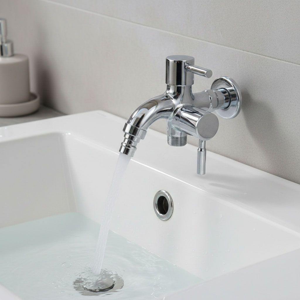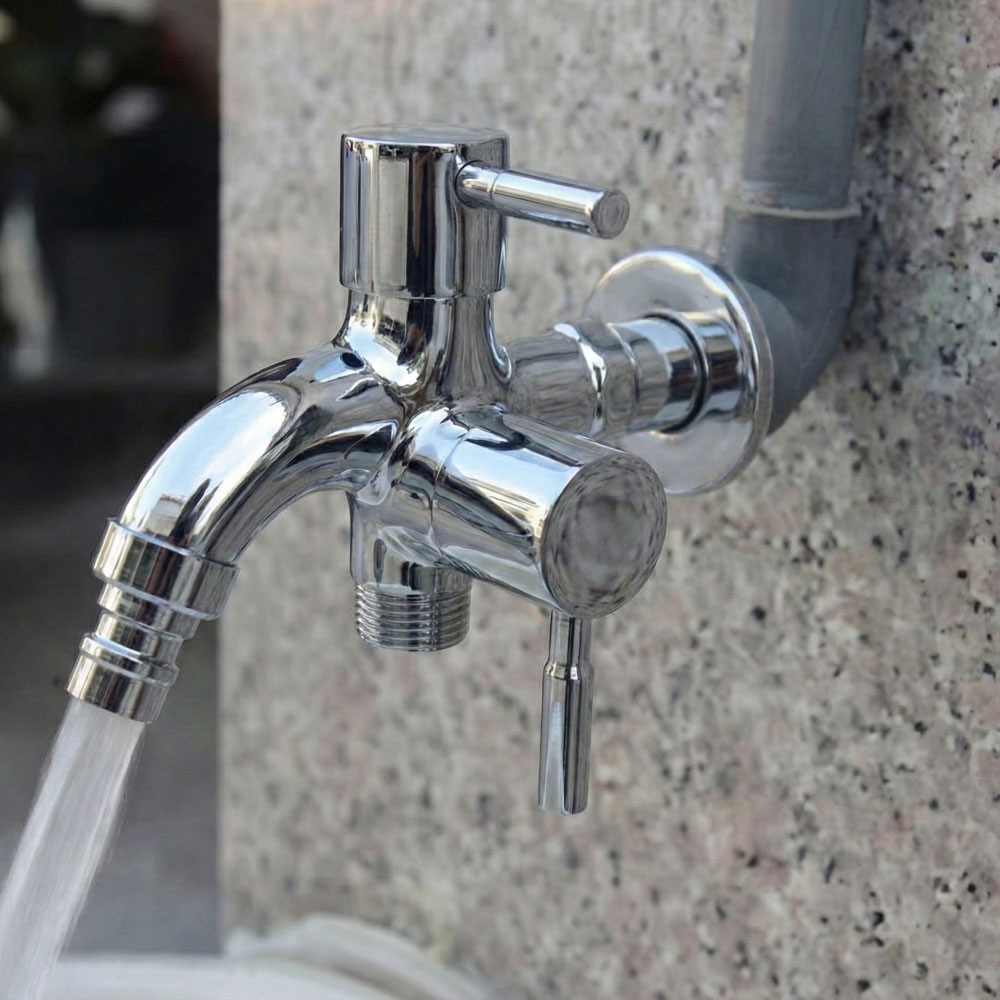 Keran air ini memiliki dua saluran keluaran yang bekerja secara independen, memungkinkan aliran air ke dua arah berbeda secara bersamaan tanpa kehilangan tekanan atau gangguan. Dilengkapi knop terpisah yang ergonomis, setiap jalur air dapat dikendalikan secara presisi dengan putaran yang halus dan nyaman meskipun tangan basah. Dirancang agar kompatibel dengan berbagai jenis konektor, alat ini sangat fleksibel untuk kebutuhan seperti menyambung ke mesin cuci, selang taman, atau alat cuci mobil.