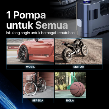 | Pompa Multifungsi Anda bisa menggunakan pompa ini untuk mengisi angin ban mobil, sepeda motor, sepeda, bola, kasur angin, hingga perahu karet. |