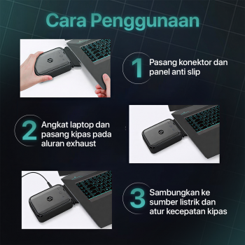 | Ukuran Universal untuk Semua Dibekali 3 konektor universal Anda bisa menggunakan kipas pendingin dengan berbagai model dan ukuran laptop. Kini tak perlu menggunakan alat terpisah untuk mendinginkan aneka laptop. |
