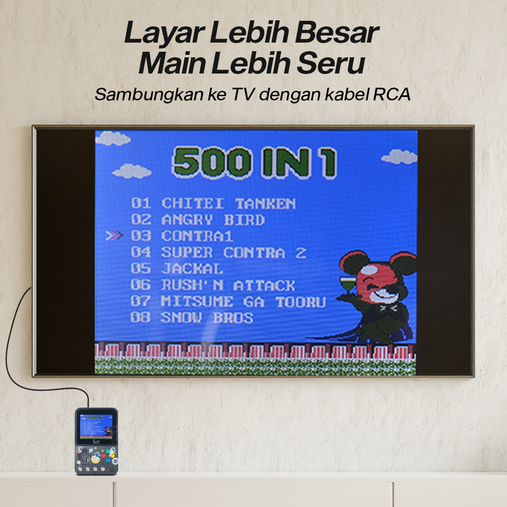 | 500 Game Retro Siap Main Tak perlu instalasi atau koneksi internet, cukup nyalakan dan langsung main. Cocok untuk semua usia, dari nostalgia dewasa hingga hiburan anak-anak. |