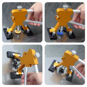 | Perbaiki Bodi Mobil Alat ini menggunakan prinsip leverage agar proses reparasi penyok pada bodi mobil berjalan dengan efisien dan hemat tenaga kerja. Proses ini juga lebih mudah untuk dikerjakan sendiri dan tidak memerlukan alat berat seperti di bengkel besar. |