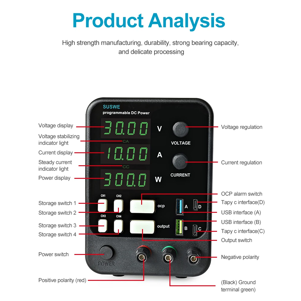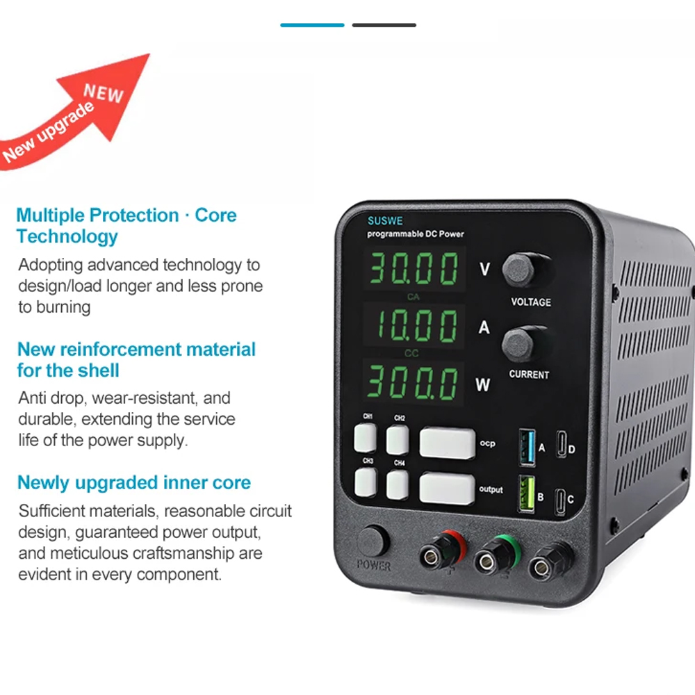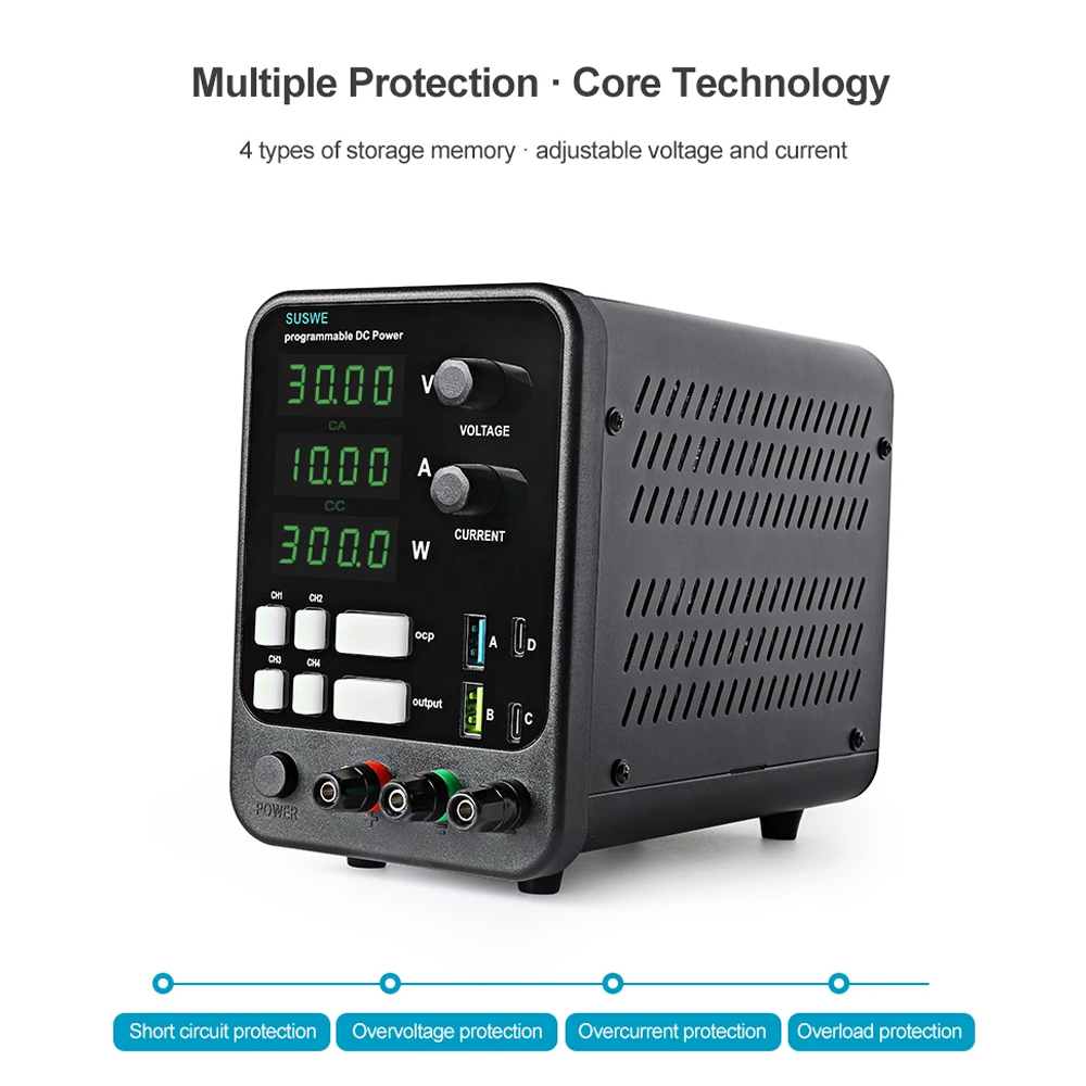 Jika Anda membutuhkan power supply yang tegangan dan arus listriknya dapat disesuaikan, Anda bisa menggunakan adjustable power supply dari SUSWE. Hadir dengan layar informatif dan tombol intuitif membuat penggunaannya lebih mudah. Dilengkapi dengan berbagai perlindungan yang membuat penggunaannya terjamin aman. Sempurna digunakan untuk pengujian, riset, dan perakitan elektronik.
