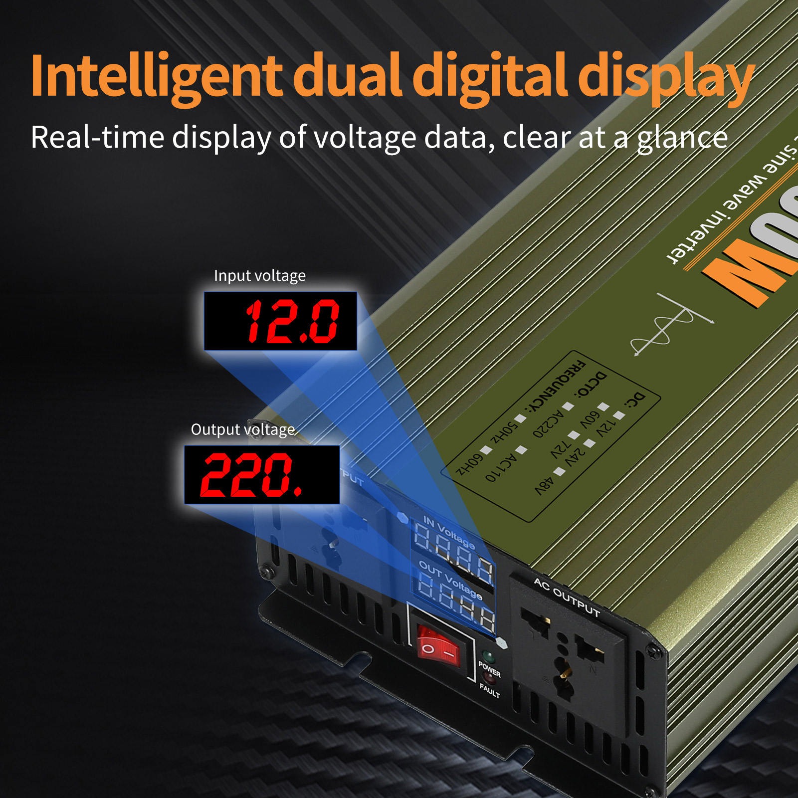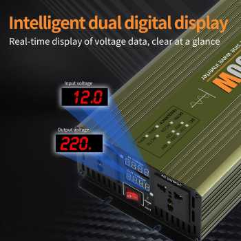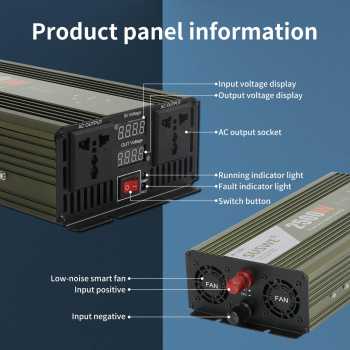 | Pantau Melalui Layar LED Untuk memastikan kelancaran penggunaan, Anda perlu memantau besaran arus DC dan AC yang digunakan. Power inverter ini dilengkapi layar LED di salah satu sisinya yang menampilkan tegangan input dan output secara jelas. |