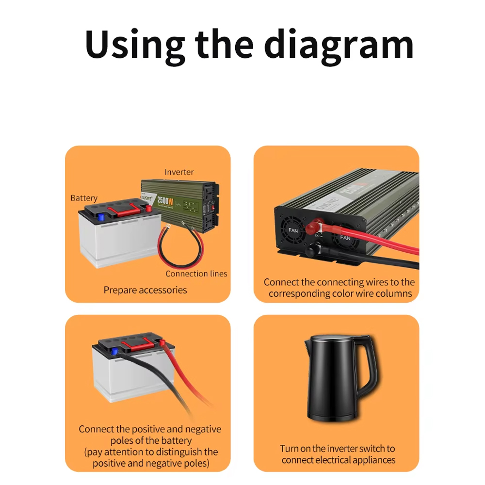 | Mengubah Arus Listrik DC ke AC Karena arus dari aki mobil berjenis DC, Anda mungkin kesulitan mengisi daya perangkat elektronik saat perjalanan. Itulah sebabnya Anda membutuhkan power inverter yang mengubah arus DC menjadi AC sesuai kebutuhan perangkat Anda. Daya suplainya mencapai 2500 W, cocok untuk menyalakan berbagai perangkat. |