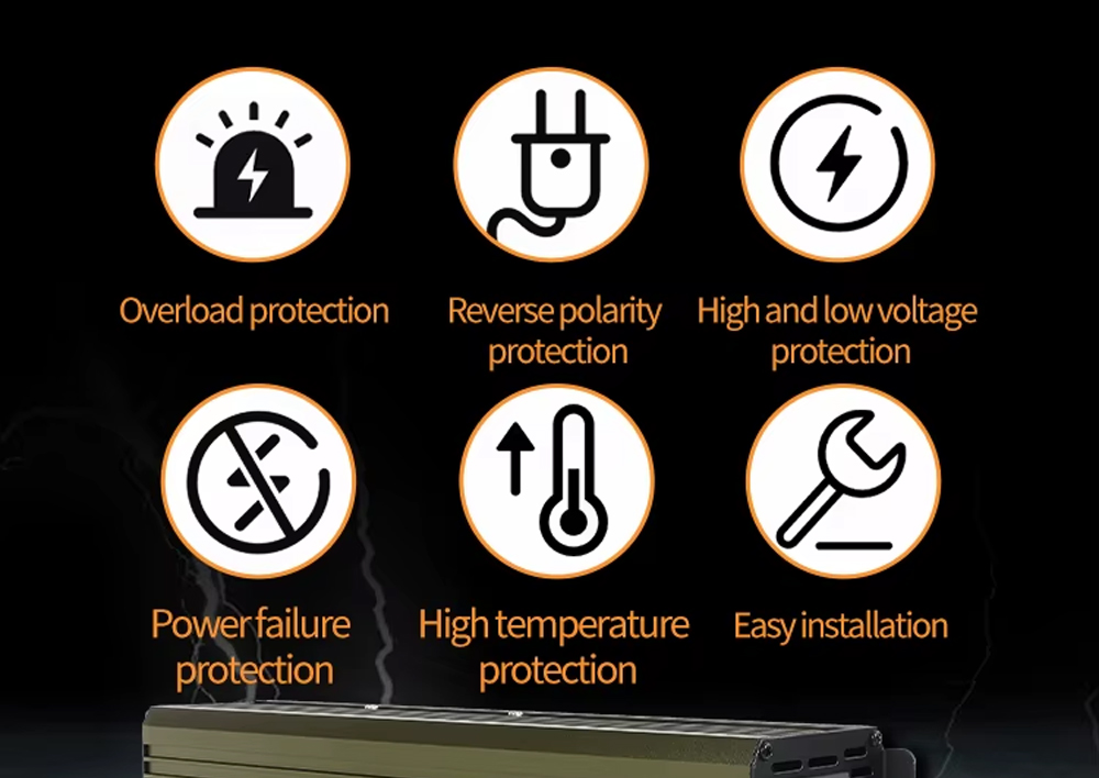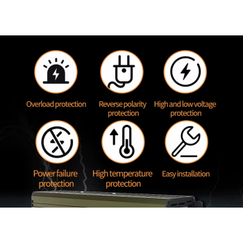 | Berbagai Proteksi Kelistrikan Inverter ini dilengkapi proteksi terhadap beban berlebih, tegangan rendah, tegangan tinggi, dan lainnya. Muatan berlebih dapat dicegah karena inverter memiliki sistem mati otomatis. Selain itu inverter dilengkapi kipas pendingin untuk mencegah panas berlebih dan mengurangi risiko kebakaran. |