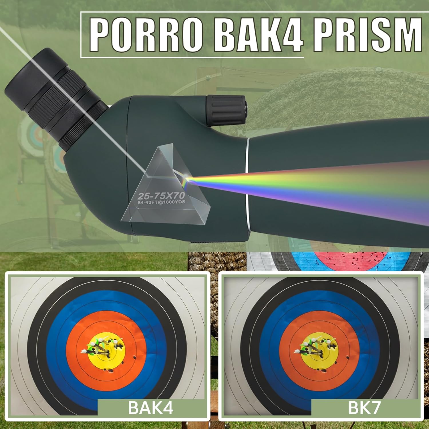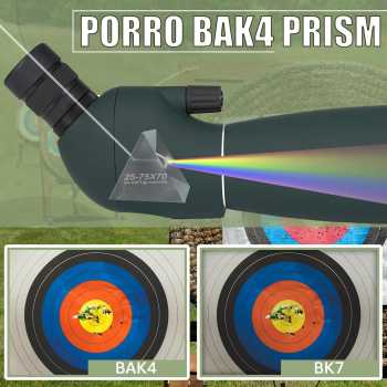 | Kejernihan Maksimal Teleskop spotting menggunakan kaca prisma BAK4 yang dikombinasikan dengan lapisan fully multi coated untuk memastikan kejernihan optimal. Gambar menjadi lebih tajam, pantulan cahaya diminimalkan, dan warna tampak alami. Ideal untuk penggunaan siang maupun sore hari. |