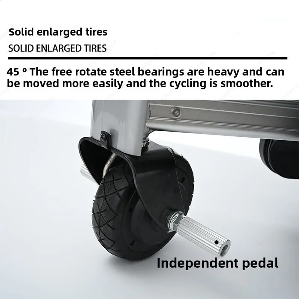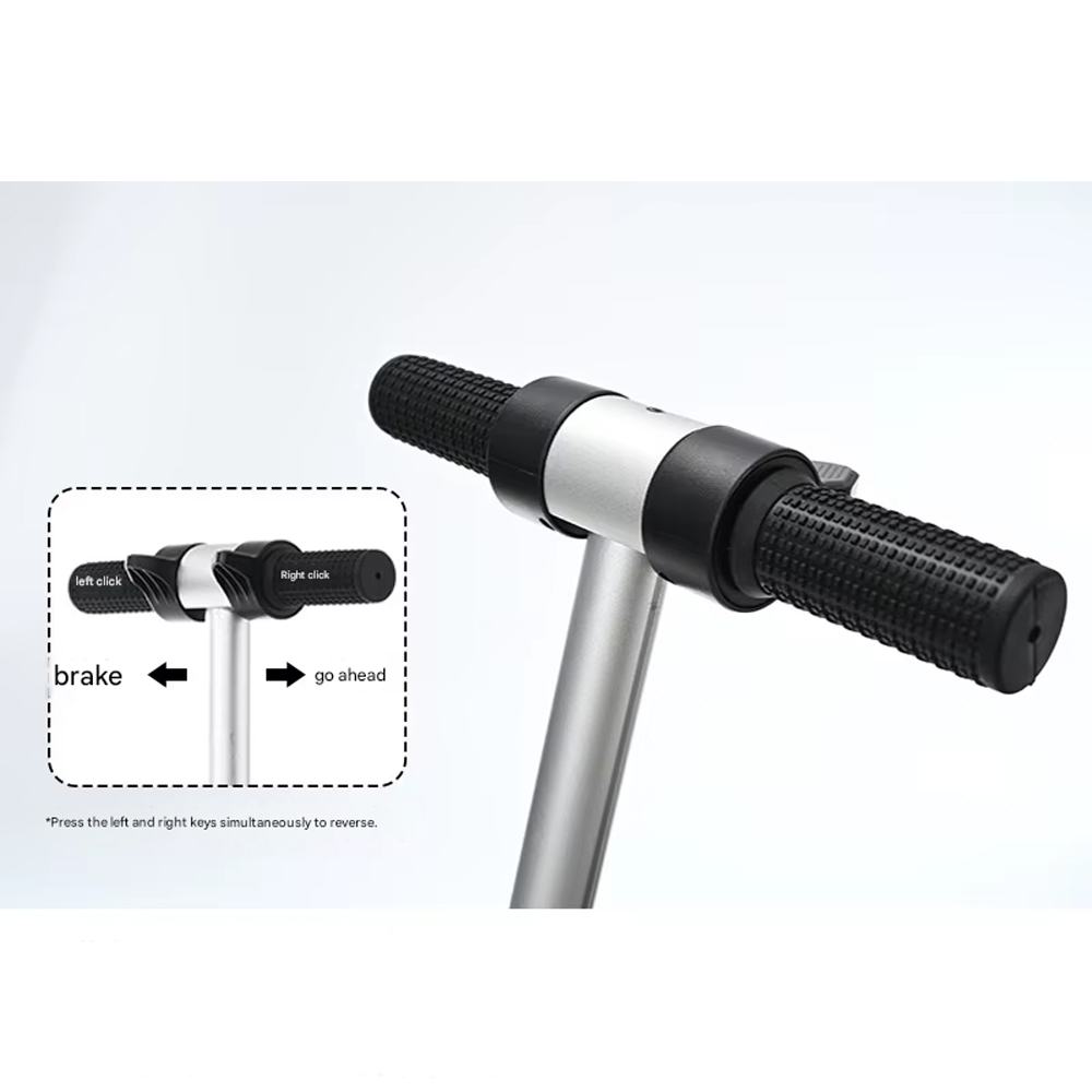 | Kendarai dengan Aman Koper skuter yang satu ini bisa berjalan dengan aman berkat ban anti slip dan foot rest. Ban berukuran 5.5 Inch yang anti slip ini cocok digunakan di jalur datar, misalnya lantai bandara. Anda juga bisa meletakkan kaki dengan nyaman pada foot rest di bagian kanan dan kiri koper. Pedal gas dari bahan karet menjamin kenyamanan tangan agar tidak slip saat Anda kendarai. |