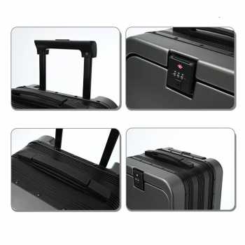 | Rangka Kuat dan Tahan Lama Struktur utama koper menggunakan aluminium alloy berkualitas tinggi, dipadukan dengan sisi berbahan PC film dan ABS shell. Kombinasi material ini menjadikan koper tahan air, tahan aus, tidak mudah berubah bentuk, serta mampu menopang beban hingga 110 kg, sehingga aman digunakan oleh orang dewasa. |