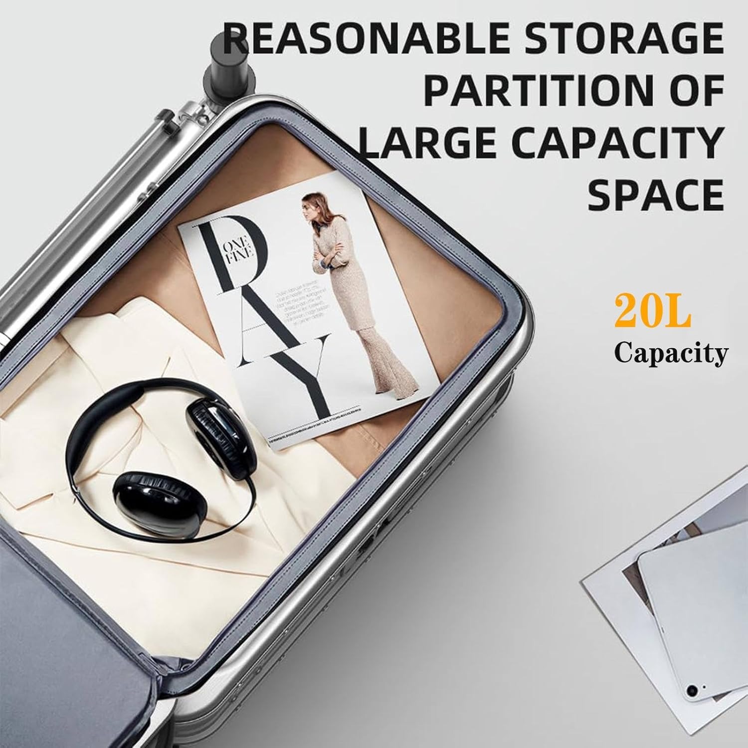 Kecanggihan koper skuter ini tak membuat daya tampungnya menurun. Dengan ukuran 20 Inch, kompartemennya menyediakan 20 L ruang penyimpanan. Anda bisa menyimpan berbagai barang yang dibutuhkan untuk bepergian jauh. Koper berukuran 20 Inch juga bisa disimpan di kabin pesawat.