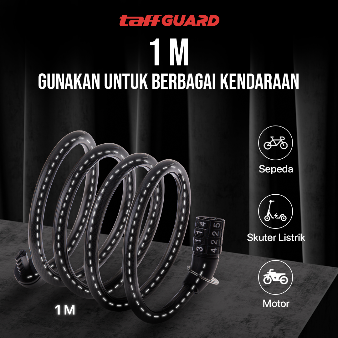 | Jaga Keamanan Berbagai Kendaraan Hadir dengan ukuran 1 M, gunakan gembok TaffGUARD untuk jaga keamanan berbagai kendaraan. Mulai dari sepeda, skuter, hingga motor, semua kendaraan tetap aman di mana saja. |