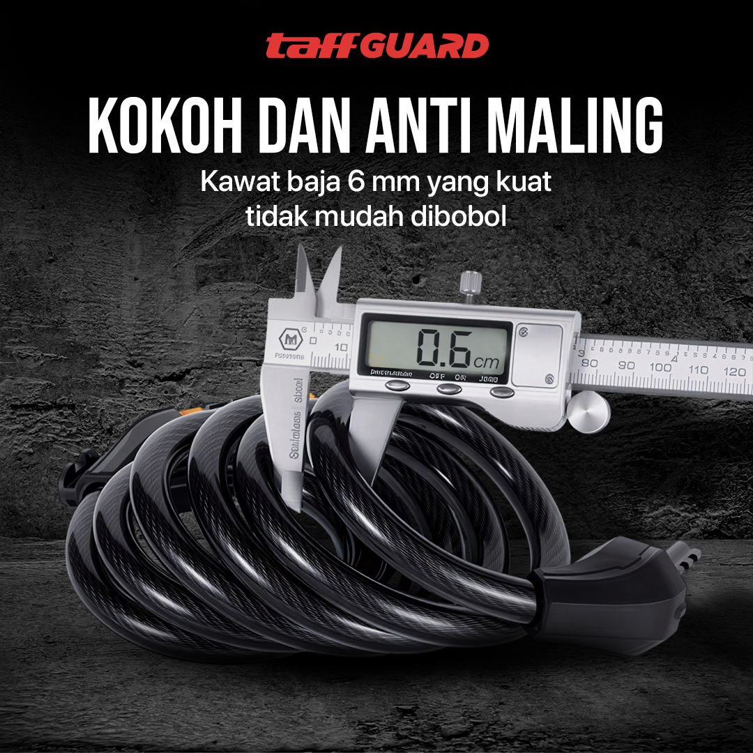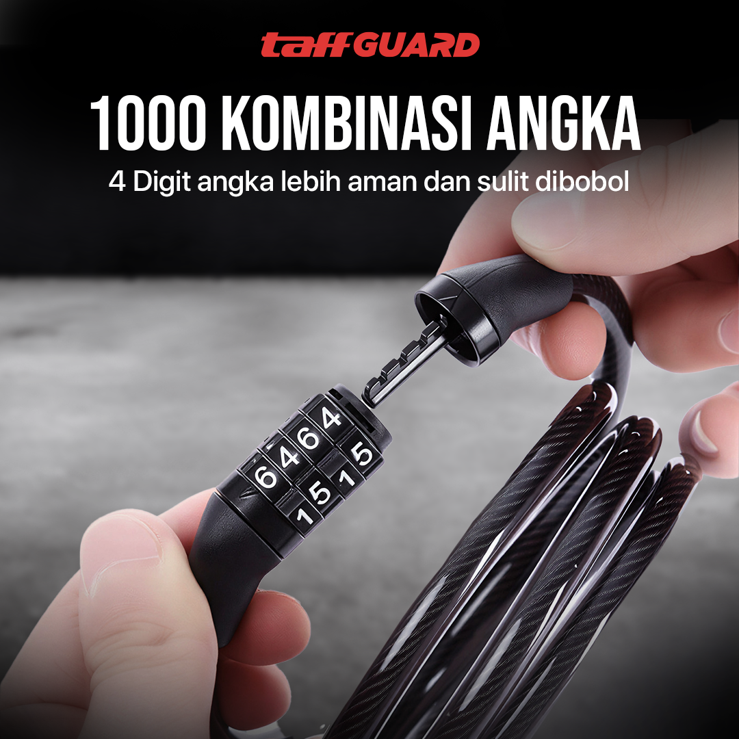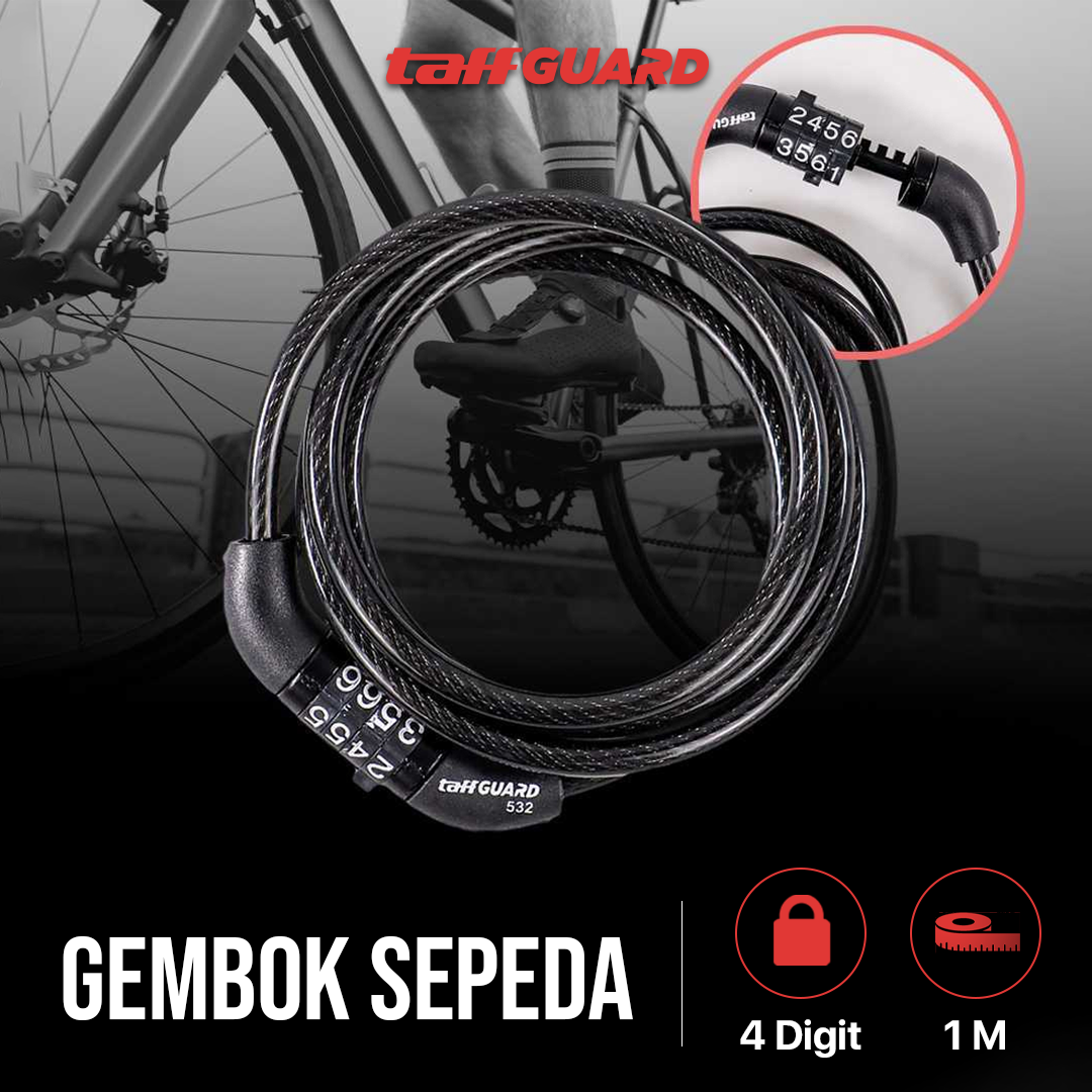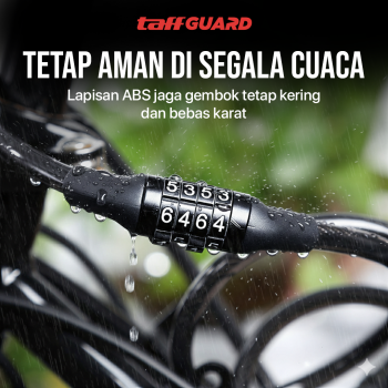 Jaga keamanan sepeda saat diparkir menggunakan gembok sepeda dari TaffGUARD. Keamanan terjaga berkat 4 kombinasi angka yang bisa diatur seuai kebutuhan. Kawat baja dengan ketebalan 6 mm kuat dan kokoh untuk mencegah sepeda diambil paksa. Kini Anda bisa memarkir sepeda kesayangan dengan aman dan tenang meskipun di mana saja.