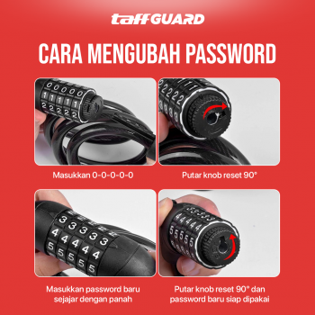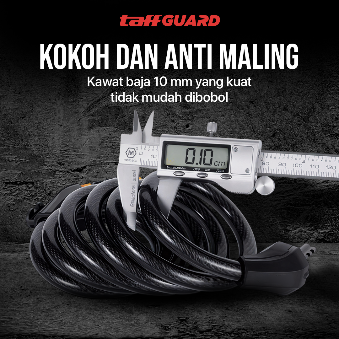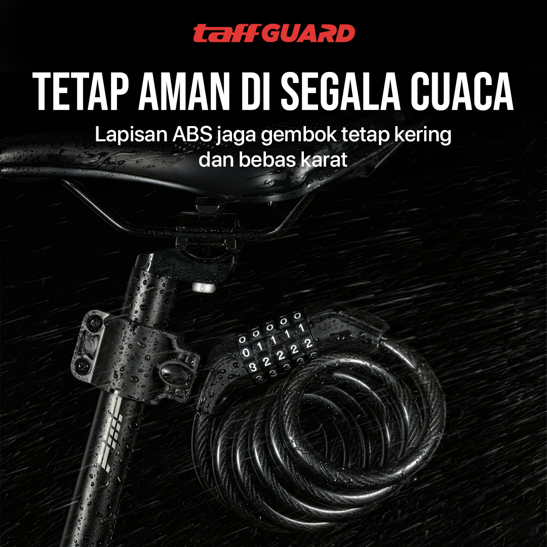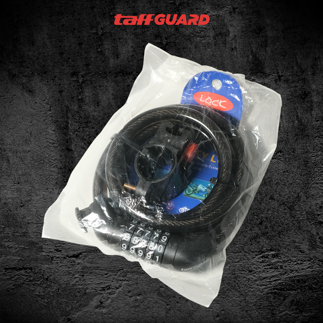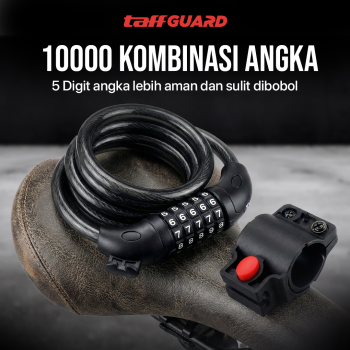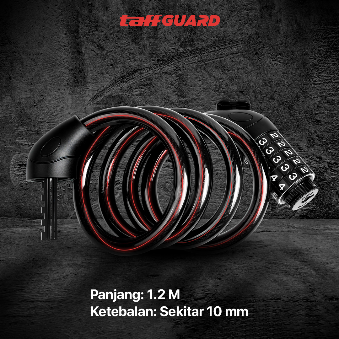 Jaga keamanan sepeda saat diparkir menggunakan gembok sepeda dari TaffGUARD. Keamanan terjaga berkat 5 kombinasi angka yang bisa diatur seuai kebutuhan. Kawat baja dengan ketebalan 10 mm kuat dan kokoh untuk mencegah sepeda diambil paksa. Kini Anda bisa memarkir sepeda kesayangan dengan aman dan tenang meskipun di mana saja.