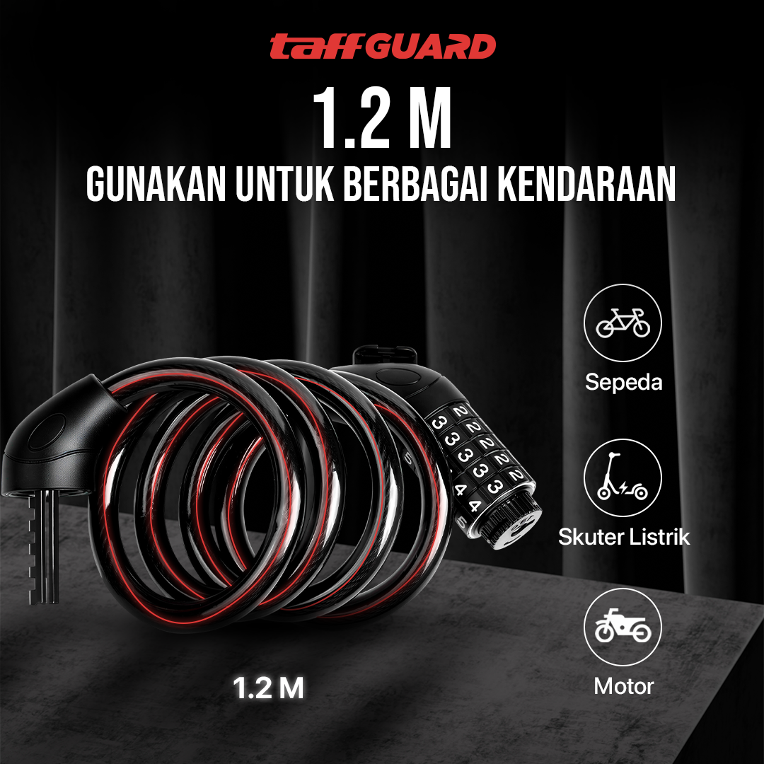 | Jaga Keamanan Berbagai Kendaraan Hadir dengan ukuran 1.2 M, gunakan gembok TaffGUARD untuk jaga keamanan berbagai kendaraan. Mulai dari sepeda, skuter, hingga motor, semua kendaraan tetap aman di mana saja. |