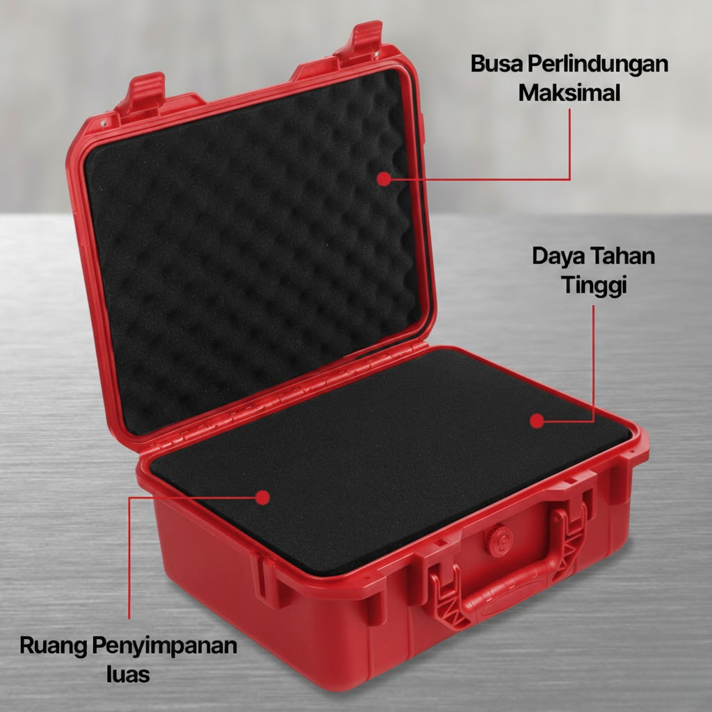 | Busa Perlindungan Maksimal untuk Keamanan Ekstra Kotak ini dilengkapi dengan lapisan busa di bagian dalam yang dirancang untuk memberikan perlindungan maksimal terhadap benturan dan guncangan. Busa ini menjaga barang-barang tetap stabil, mencegah kerusakan, dan melindungi dari goresan saat kotak terguncang atau tertumpuk dengan barang lain. Selain itu, busa dengan ruang fleksibel yang dapat disesuaikan memungkinkan Anda mengatur ruang penyimpanan sesuai dengan bentuk dan ukuran alat yang ingin dibawa, sehingga peralatan tersimpan dengan lebih rapi dan aman. |