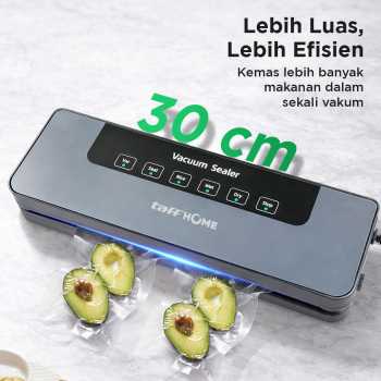 Simpan aneka makanan lebih lama menggunakan vacuum sealer TaffHOME. Tekanan vakum yang tinggi dapat menghilangkan udara dalam kemasan untuk memastikan makanan bisa bertahan 3x lebih lama dibanding mengunakan kemasan biasa. Terdapat 3 mode penggunaan praktis yang bisa dipilih untuk berbagai jenis makanan.