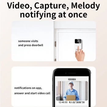 | Seamless Wireless Remote Connection Proses instalasi bel pintu ini sangat mudah dan praktis karena 100% menggunakan koneksi wireless WiFi tanpa perlu menarik kabel yang rumit. Anda dapat menghubungkan perangkat ke jaringan WiFi rumah dan mengontrol seluruh fungsinya melalui aplikasi smartphone yang intuitif. Kebebasan nirkabel ini memungkinkan Anda memasang bel di posisi mana pun yang diinginkan untuk mendapatkan sudut pandang terbaik di area pintu masuk. |