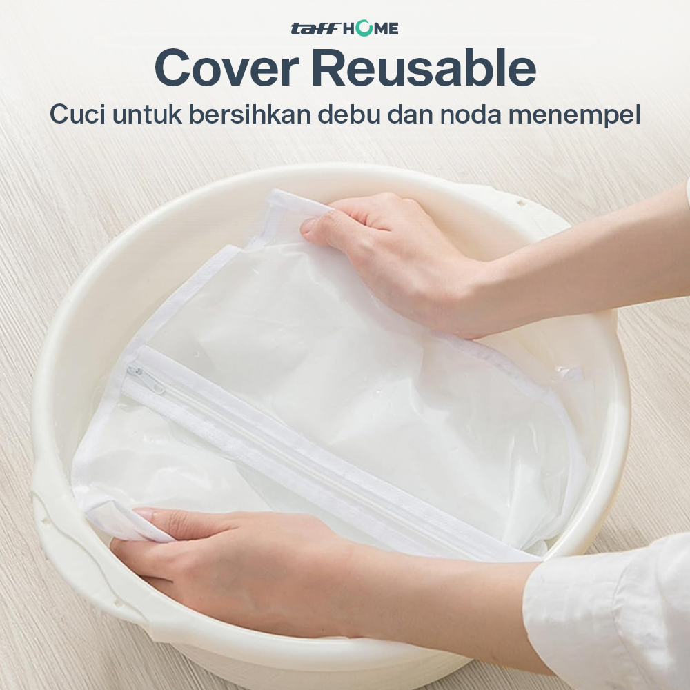 | Cover Reusable Hadir sebagai produk reusable, cuci cover pakaian untuk membersihkan debu dan noda menempel. Anda pun dapat menggunakan cover yang bersih untuk menyimpan pakaian kembali. |