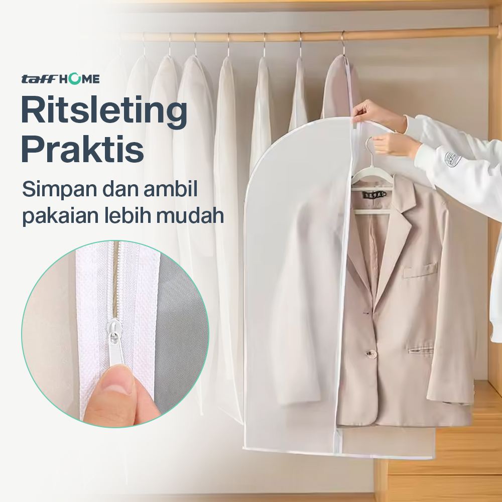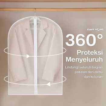 Lindungi pakaian dari debu dan kotoran saat di simpan menggunakan cover pakaian dari TaffHOME. Dapat melindungi pakaian dari semua sisi, cover ini cocok untuk menyimpan pakaian spesial yang jarang dipakai. Hadir dengan ukuran universal yang bisa digunakan untuk menyimpan aneka jenis pakaian. Pakaian tetap bersih dan rapi meski disimpan dalam jangka lama.