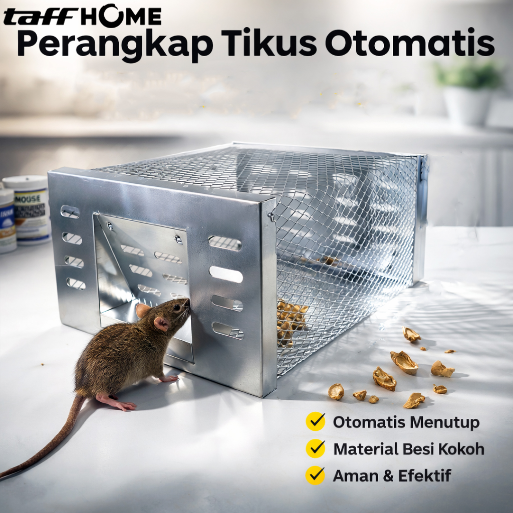 Amankan rumah, gudang, atau tempat usaha Anda dari gangguan tikus dengan jebakan perangkap tikus dari TaffHOME. Solusi cerdas, praktis, dan ramah lingkungan untuk menyingkirkan tikus tanpa menggunakan racun atau bahan kimia berbahaya. Dibuat dari bahan logam kokoh berkualitas tinggi, perangkap ini dirancang untuk menangkap tikus secara efektif dan aman. Menggunakan desain pintu satu arah yang mencegah hewan keluar setelah terperangkap. Ukurannya juga besar, bisa menjebak lebih dari 2 tikus.