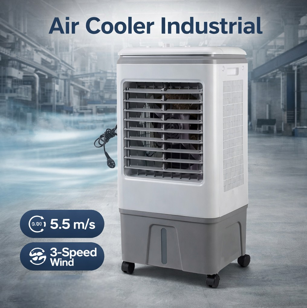 | Motor 115 W Peforma Industri Menggunakan motor 115 W berdaya stabil, air cooler mampu menghasilkan tekanan udara tinggi tanpa konsumsi energi berlebihan. Sistem evaporative cooling bekerja tanpa kompresor freon, sehingga lebih hemat listrik dan lebih ramah operasional jangka panjang. Untuk kebutuhan industri dan komersial, efisiensi daya ini secara langsung menurunkan biaya operasional bulanan. |