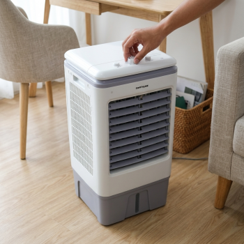 | Kapasitas Tangki Besar 30 L Dilengkapi tangki berkapasitas 30 L (kapasitas aktual ± 17 L), air cooler mampu beroperasi di jam kerja tanpa sering pengisian ulang. Kapasitas besar ini sangat ideal untuk shift kerja panjang, event harian, atau operasional gudang yang berjalan nonstop. Pendinginan tetap stabil tanpa interupsi pengisian air berulang. |