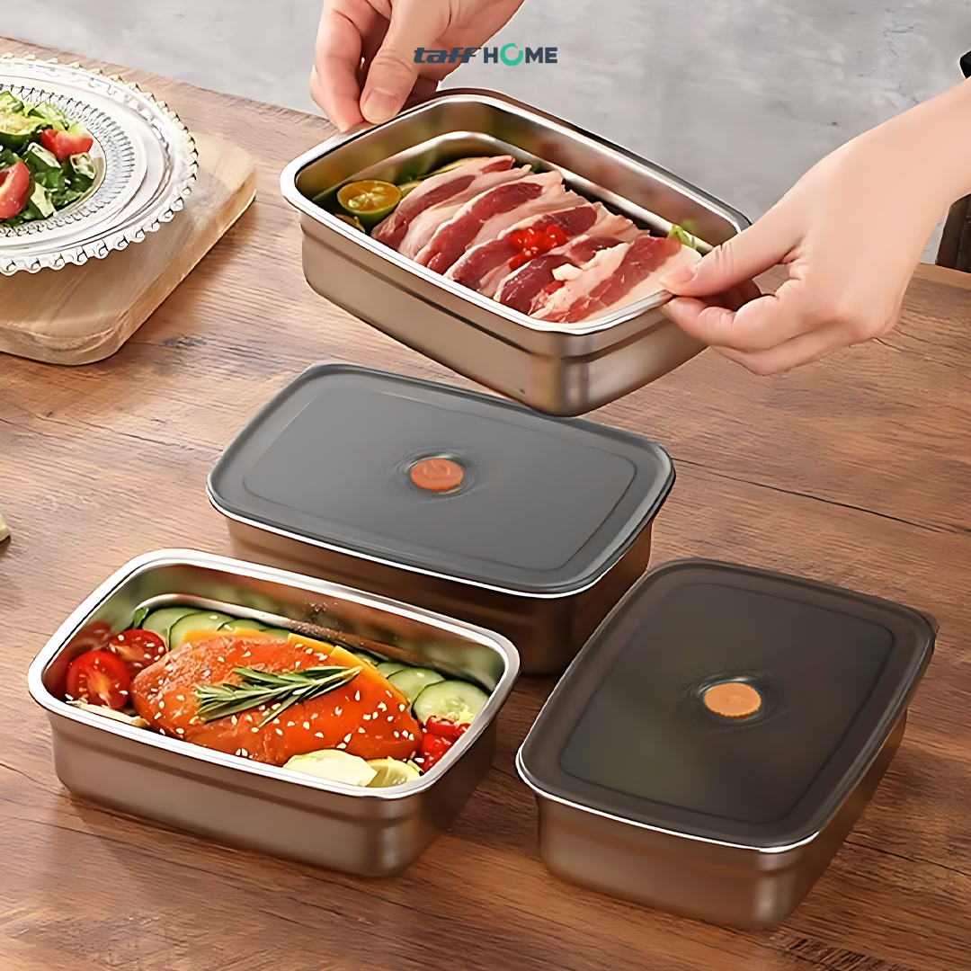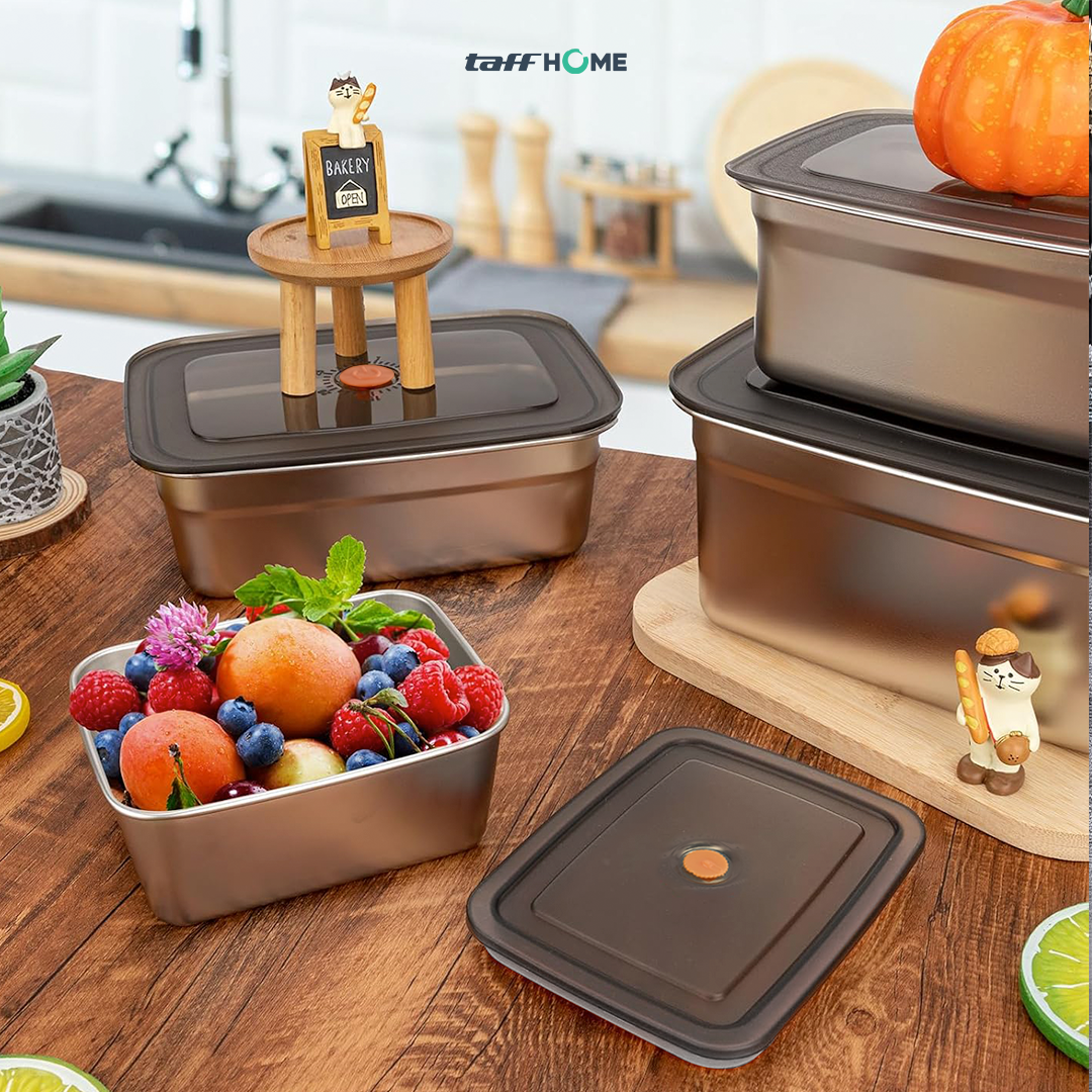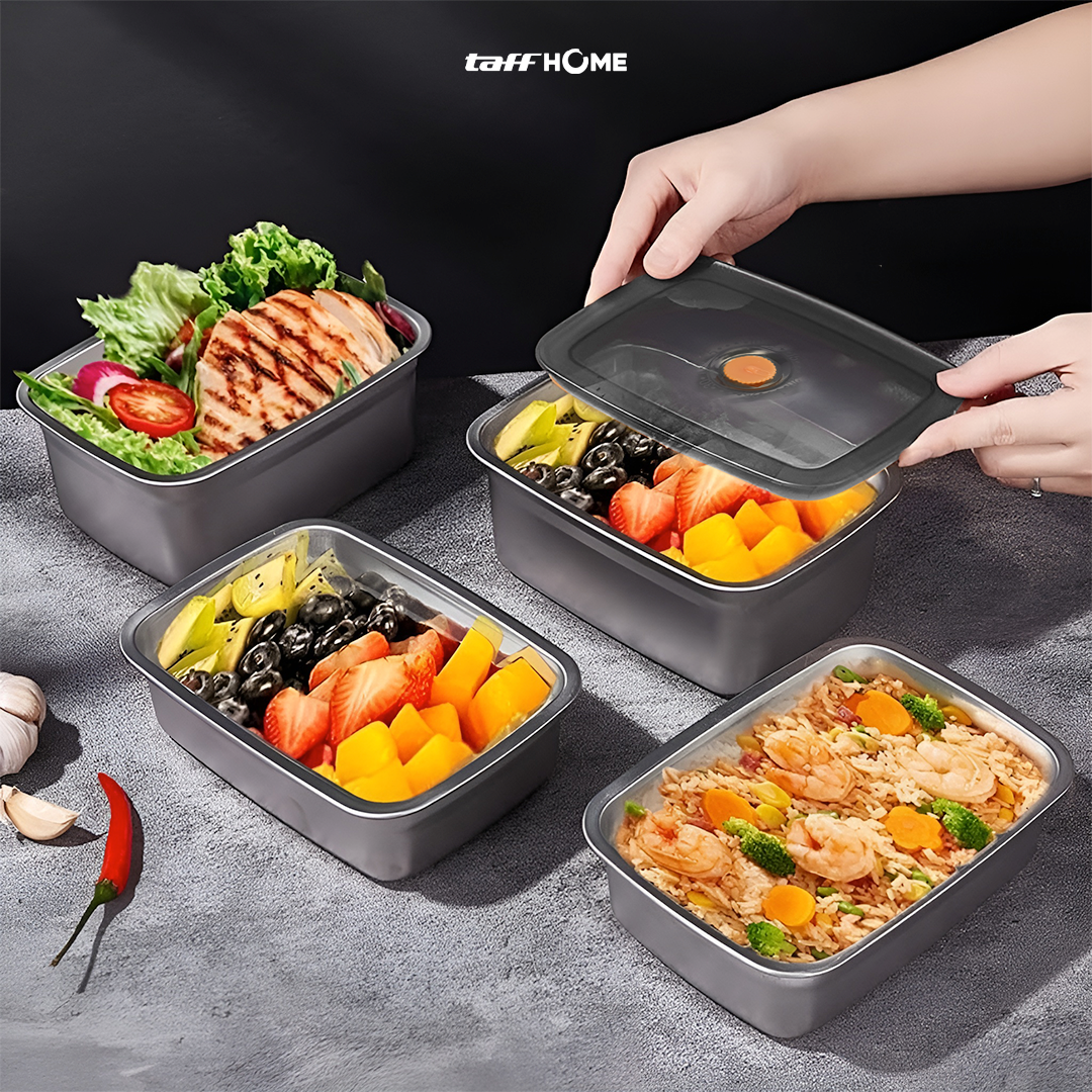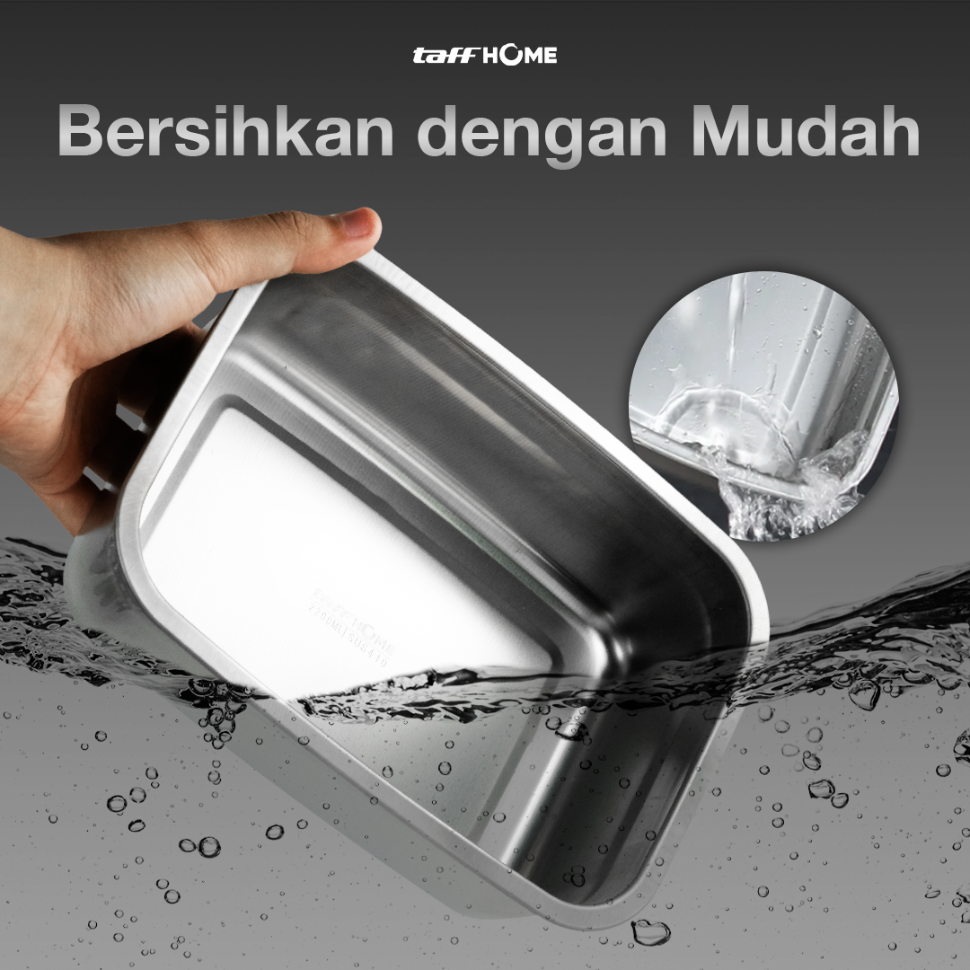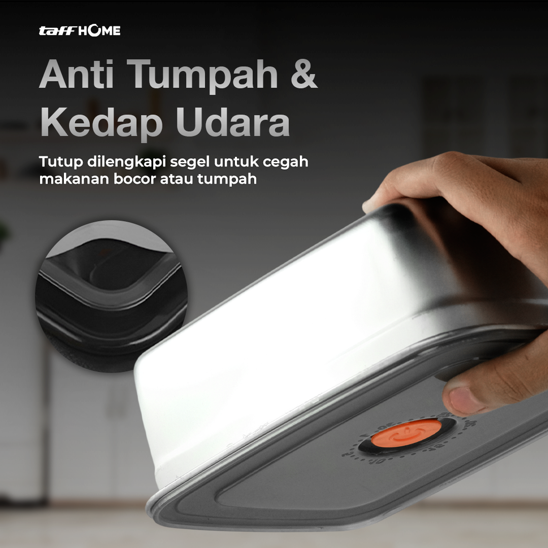 Kotak makan TaffHOME hadir dengan material tahan gores dan korosi, dilengkapi desain kedap udara dan anti tumpah untuk menjaga makanan tetap segar. Tersedia dalam 3 pilihan ukuran hingga 1.66 L, cocok untuk membawa bekal dengan aman dan praktis setiap hari.