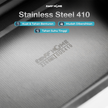 Terbuat dari stainless steel 410 yang aman untuk makanan. Tahan gores dan korosi, tampil tetap rapi meski sering dipakai. Permukaan halus, mudah dibersihkan, dan tidak menyerap bau yang lebih higienis.