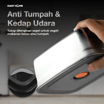 Kotak makan TaffHOME hadir dengan material tahan gores dan korosi, dilengkapi desain kedap udara dan anti tumpah untuk menjaga makanan tetap segar. Tersedia dalam 3 pilihan ukuran hingga 1.66 L, cocok untuk membawa bekal dengan aman dan praktis setiap hari.