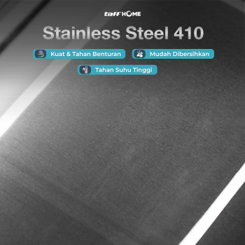 Terbuat dari stainless steel 410 yang aman untuk makanan. Tahan gores dan korosi, tampil tetap rapi meski sering dipakai. Permukaan halus, mudah dibersihkan, dan tidak menyerap bau yang lebih higienis.