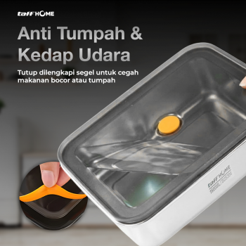 Bawa bekal lebih praktis, dan higienis dengan TaffHOME kotak makan multifungsi. Terbuat dari Stainless Steel 304, silikon, dan PP yang anti karat dan tahan suhu tinggi sehingga aman untuk makanan. Pilihan kapasitas 250 ml hingga 2.9 L cocok untuk bawa nasi, lauk, buah, hingga sayur sehari-hari.