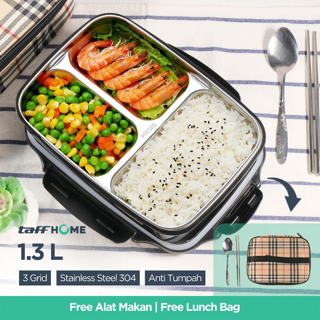 Bawa makanan favorit untuk dinikmati kapan saja dengan kotak makan stainless steel dari TaffHOME. Terbuat dari bahan stainless steel 304, kotak makan ini dilengkapi grid untuk memisahkan makanan. Tutup tebal dengan segel memastikan makanan tidak mudah tumpah saat dibawa bepergian. Tersedia dalam berbagai kapasitas sesuai kebutuhan Anda.