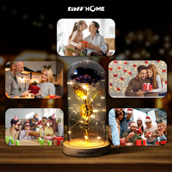 Ciptakan suasana romantis dengan lampu meja hias berdesain dome elegan dari TaffHOME. Dekorasi bunga mawar di bagian dalam memberikan sentuhan estetik yang manis, cocok untuk mempercantik sudut ruangan. Dilengkapi LED warm white yang memancarkan cahaya lembut dan menawan, membuat ruangan lebih hangat dan nyaman. Ideal untuk kamar tidur, ruang tamu, hingga dijadikan hadiah penuh makna.