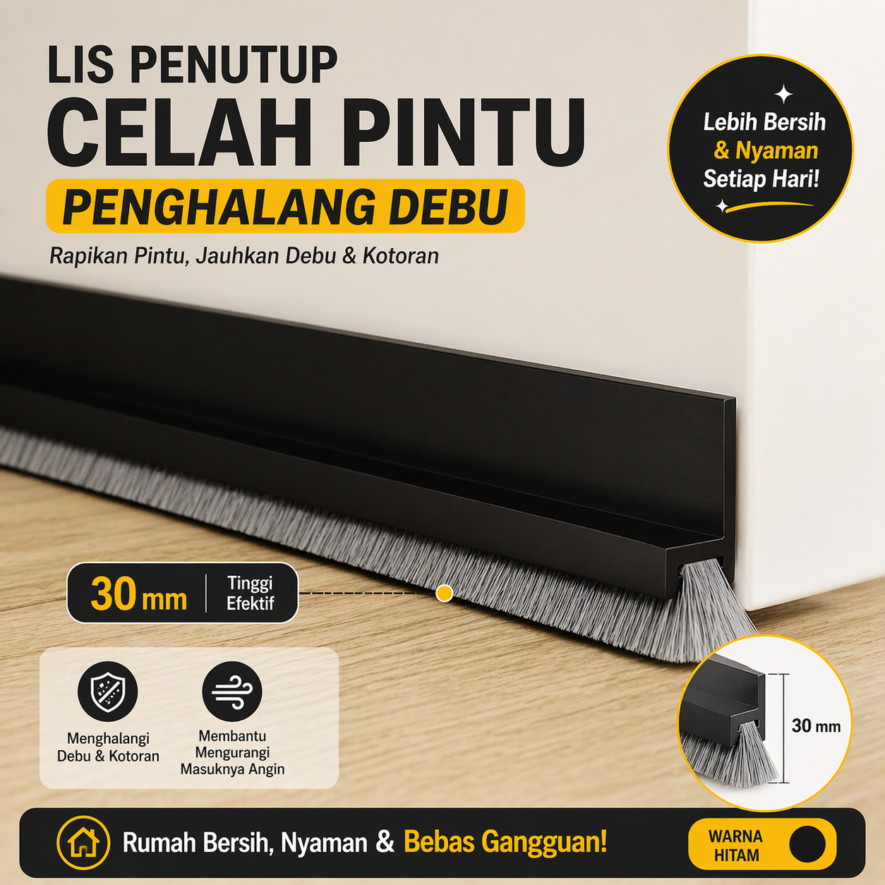 | Kokoh dan Tak Mudah Rusak Karena sering bergesekan dengan lantai, struktur lis penutup pintu ini dibuat lebih kokoh. Kombinasi bahan silikon dan bulu dapat mencegah serangga dan debu masuk ke dalam ruangan. Silikon yang tebal juga tidak mudah rusak atau sobek saat digunakan. |