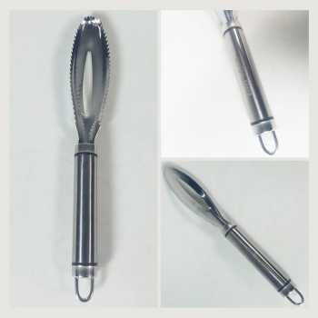 | Desain Ergonomis dan Nyaman Digunakan Pegangan dirancang agar pas di tangan dan mudah dikontrol saat digunakan. Anda tidak perlu khawatir tangan cepat lelah meski mengupas banyak ikan sekaligus. Bentuknya juga ringkas sehingga mudah disimpan di dapur. |